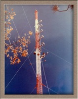 KFCF 88.1 FM - 1981 Volunteer Rychard Withers installing antennas on the tower at Meadow Lakes where the KFCF transmitter is located. |